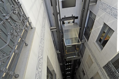 Ascensor patio interior Colegio Aparejadores de Madrid